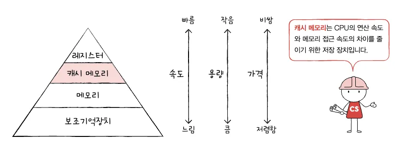 캐시 메모리는 CPU가 사용할 법한 대상을 예측하여 저장