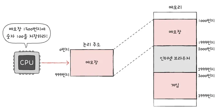 논리주소: CPU와 실행중인 프로그램이 사용하는 주소