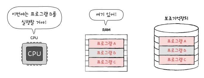 Q. CPU와 실행 중인 프로그램은 현재 메모리 몇 번지에 무엇이 저장되어 있는지 다 알고 있을까?