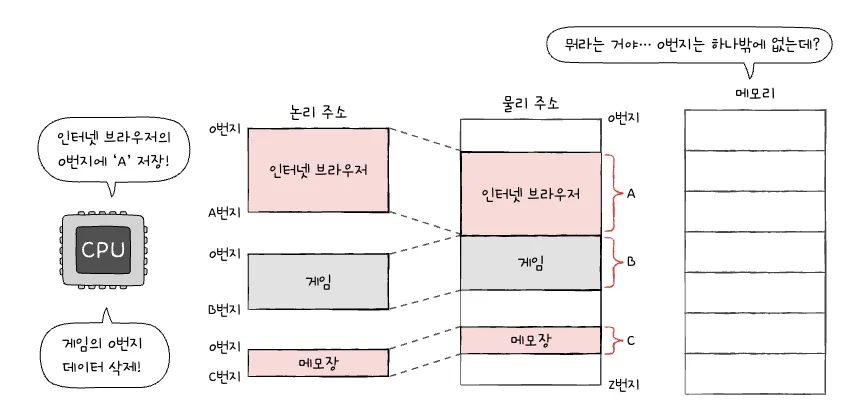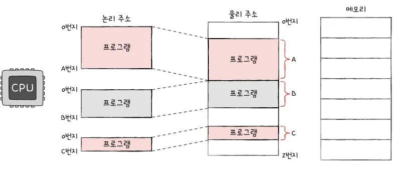 실행중인 프로그램 각각에게 부여된 0번지부터 시작되는 주소