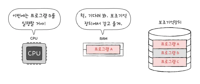 RAM의 용량이 작다면 보조기억장치에서 실행할 프로그램을 가져오는 일이 잦아 실행시간이 길어진다