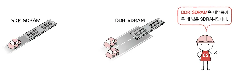 대역폭을 넓혀 속도를 빠르게 만든 SDRAM