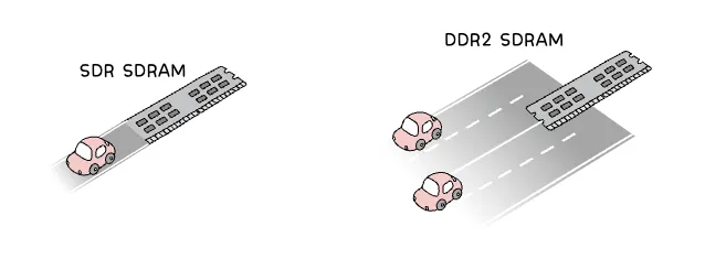 DDR2 SDRAM은 DDR SRAM보다 대역폭이 2배 넓은 SDRAM